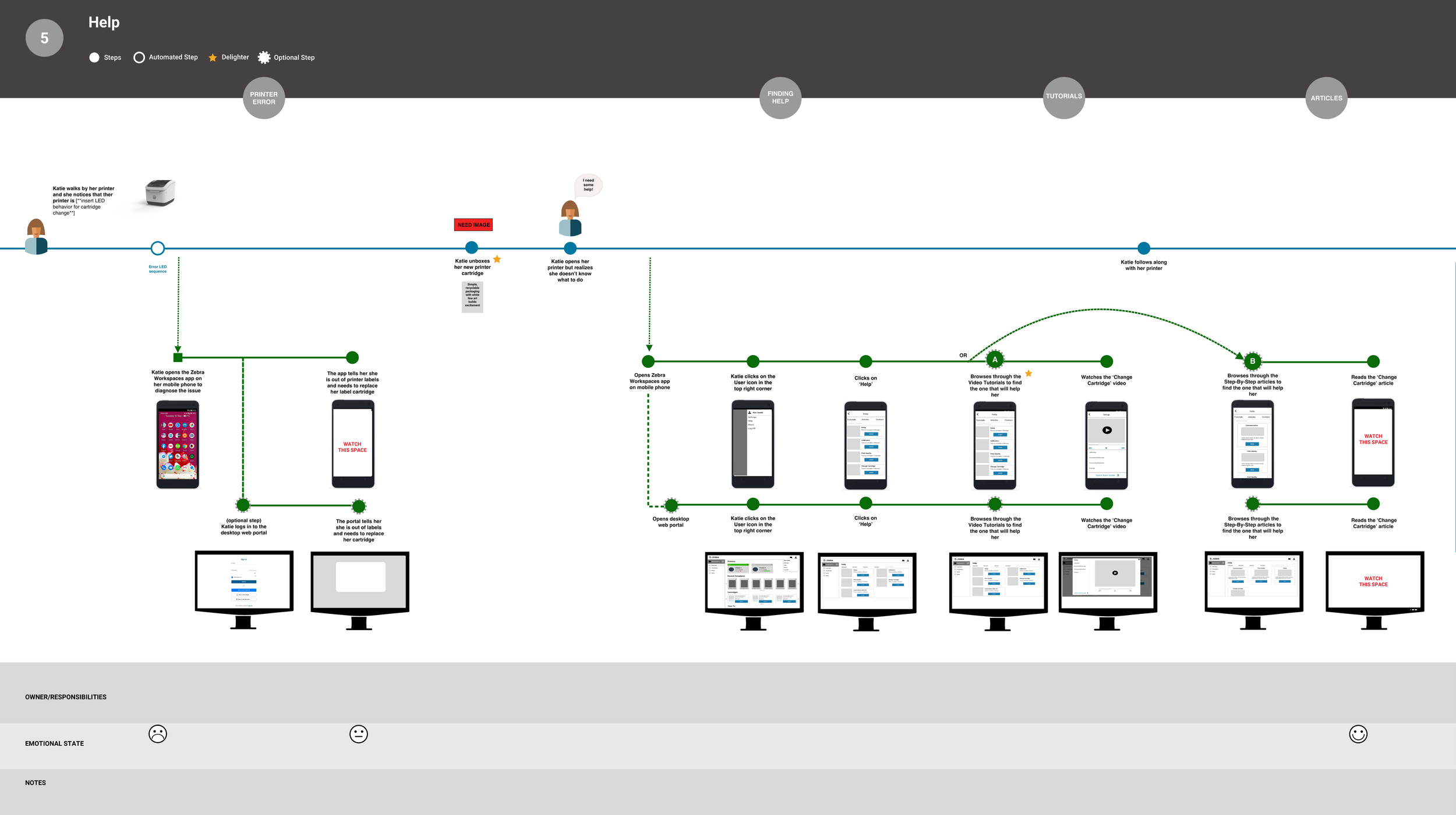 Customer journey map | template I created to build out the product and service for our new printer.